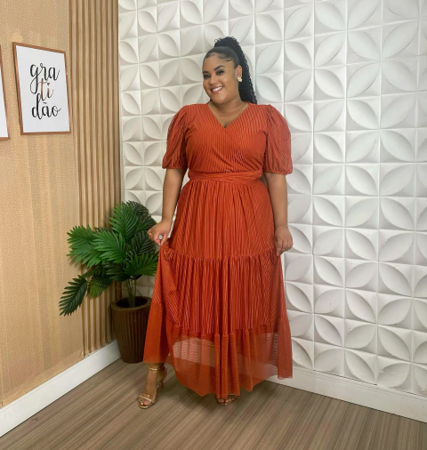vestido plus sise tule transpassado terracota 0308 R$179,99